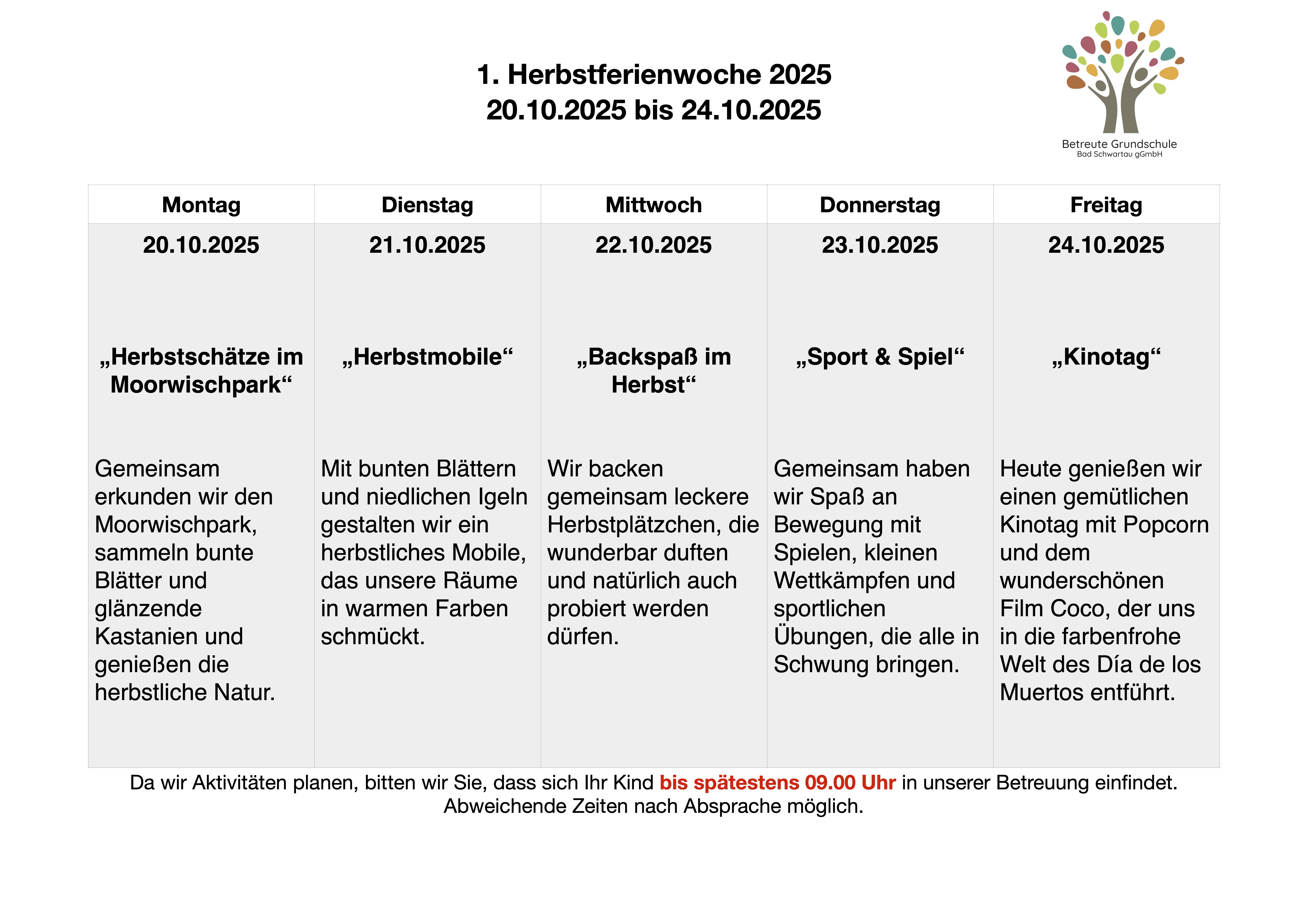 Herbstferien 2025 (20.10.2025 bis 30.10.2024)